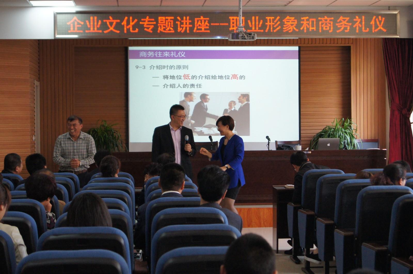 2015年5月15日,威海城建集團(tuán)組織了一場(chǎng)別開(kāi)生面商務(wù)禮儀的企業(yè)文化講座,王曉瓏?yán)蠋熞詸C(jī)智幽默的講演風(fēng)格為企業(yè)員工…