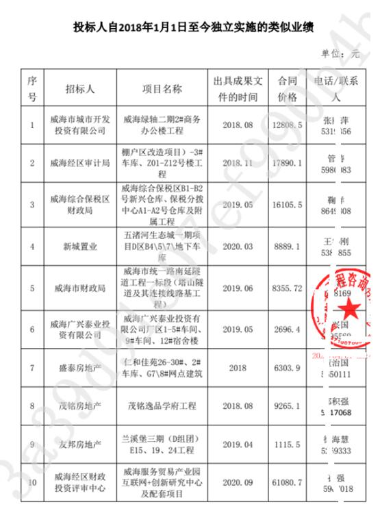 | A | 威海正華工程咨詢有限公司 | 威海市古山五巷16號鼎順商務(wù)大廈9樓 | 960000.00 |